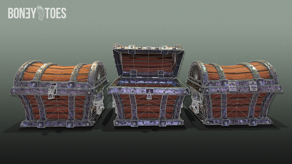 Game ready, 3D Skeleton Treasure Chests! Ready for your Unity and Unreal game projects!