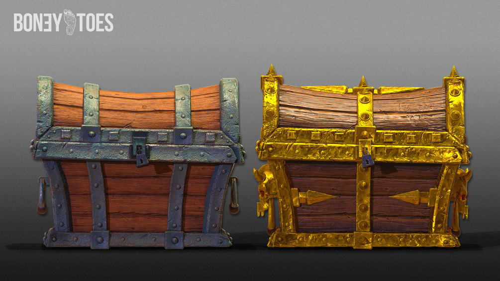 Stylized, game ready, 3D Pirate Skull Treasure Chests with gold coins! Ready for your Unity and Unreal game projects!